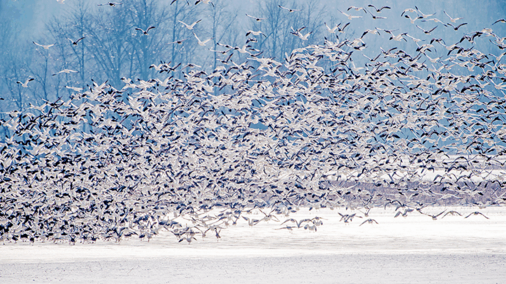 Mornings and late afternoons offer the most movement. Watch for Snow Geese, Greater White-fronted Geese, Northern Pintail, Gadwall, Canvasback, and Bald Eagles. On the right day, you may even spot Tundra Swans resting among the flocks.