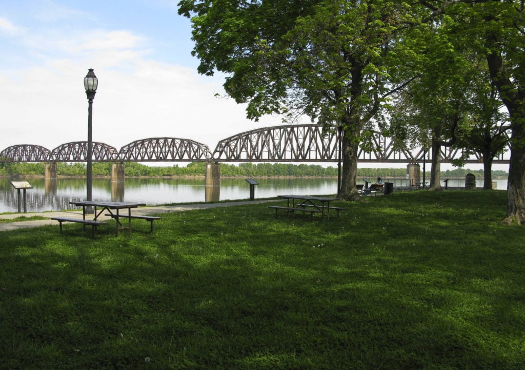 After settling into your overnight stay, begin downtown along the riverfront. Park the car and take a stroll through Audubon Mill Park, sit on a bench, and watch barges glide along the Ohio River. Take some time to spot a train ride along the railroad bridge.
