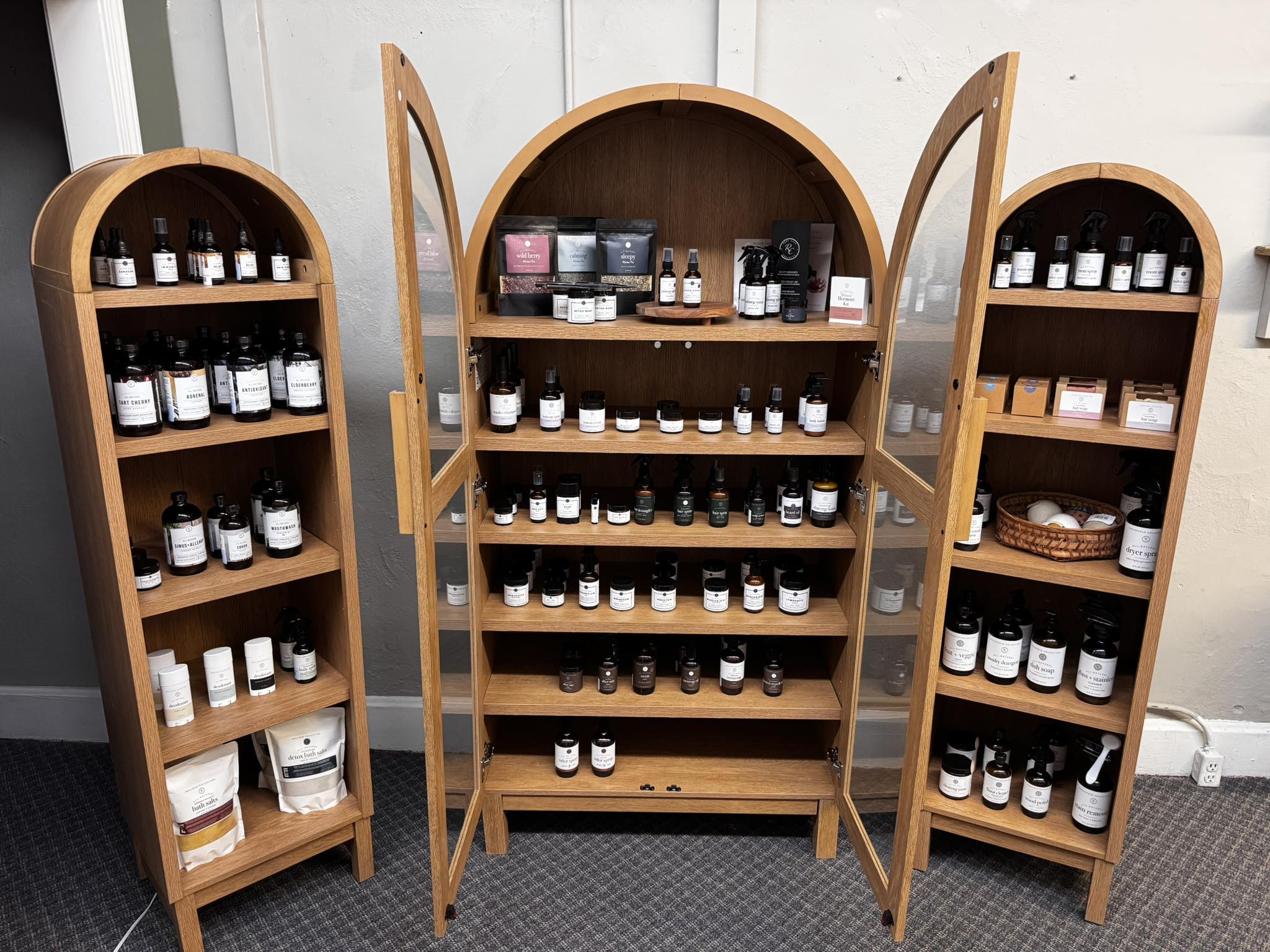 Clean label products in a Main Street boutique setting, from body wash to dish soap.