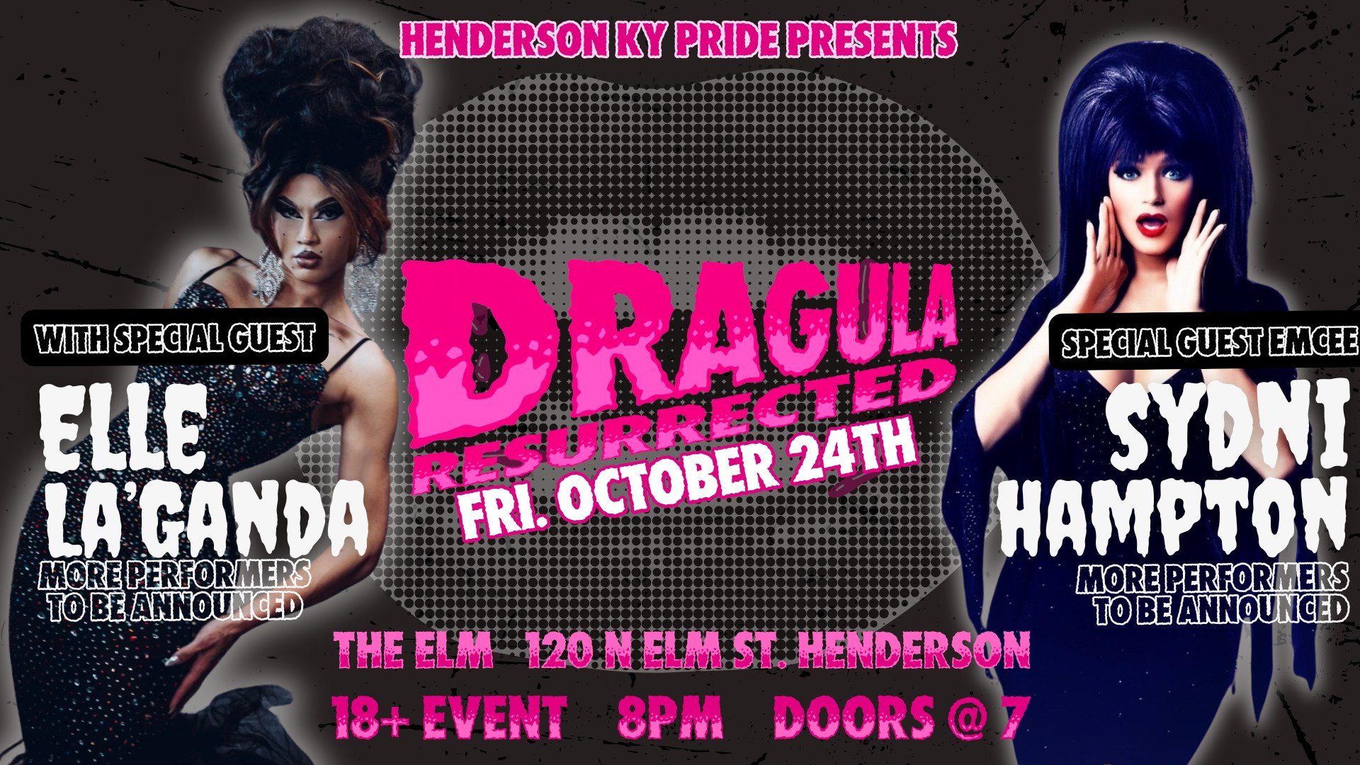 Dragula is being resurrected. Join Henderson KY Pride on Friday, October 24th at The Elm for a Halloween drag spectacular like no other. Hosted by Sydni Hampton and featuring special guest headliner Elle La’Ganda, this 18+ event will bring horror, glamour, and jaw-dropping performances back to the heart of Henderson. Doors open at 7:00 PM, with a special VIP experience beginning at 6:00 PM. Costumes are encouraged, a cash bar will be available, and the energy will be unforgettable. 🎃🦇